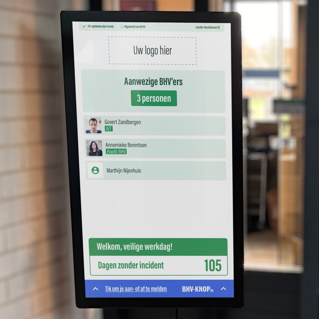 Is er vandaag genoeg BHV aanwezig? Met onze slimme app registreer je aanwezigheid automatisch bij het betreden van de locatie. Liever geen app? Dan is er de BHV Kiosk voor handmatig aan en afmelden. In beide gevallen heb je live inzicht en krijg je een seintje bij onderbezetting. Dat voelt wel zo veilig.